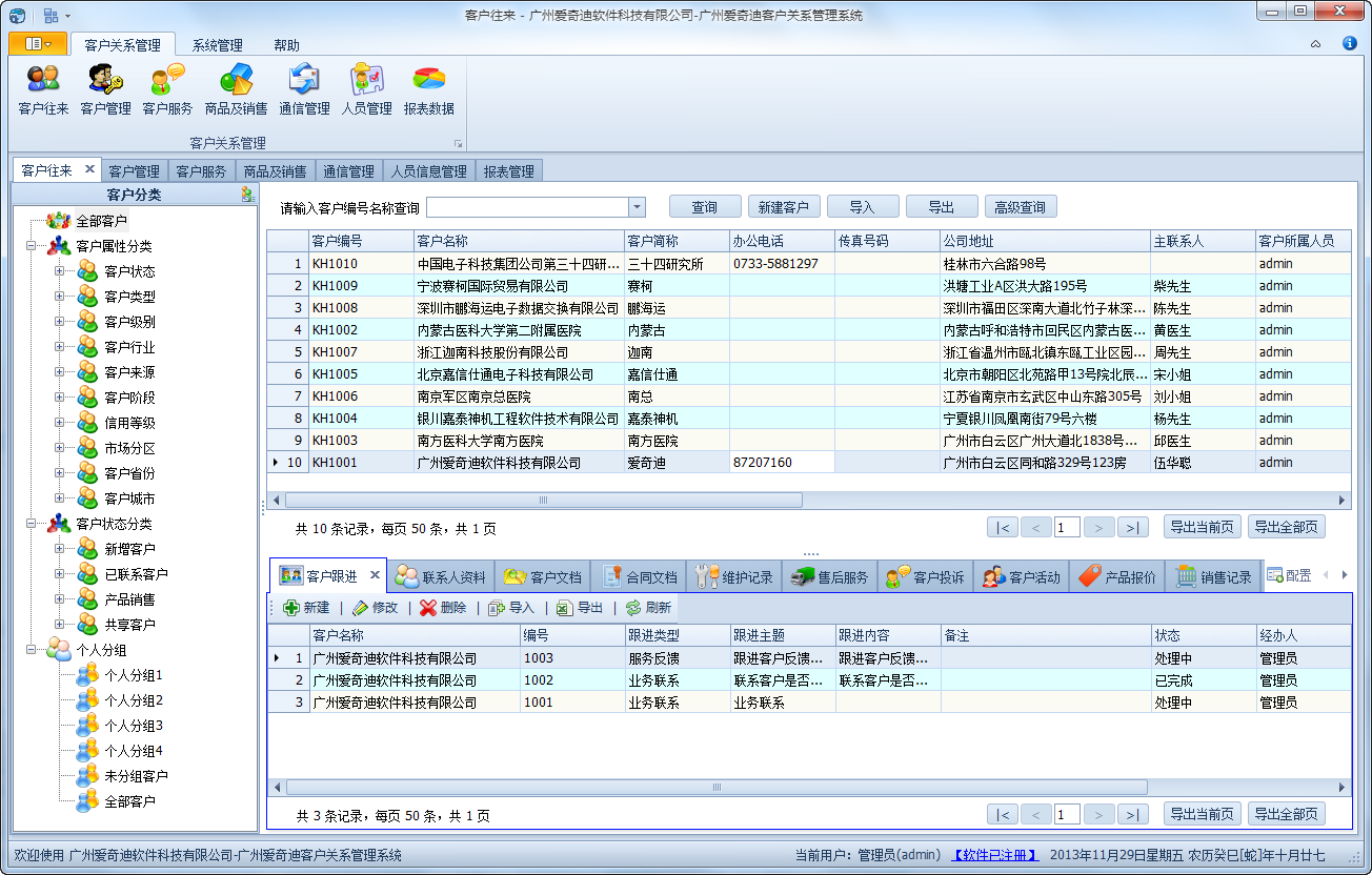 廣州愛奇迪客戶關系管理系統,是一款專業的客戶關系管理軟件(CRM管理系統),軟件以客戶為中心,把科學的管理與信息技術結合起來, 實現市場、銷售、服務協同工作統一管理。幫助企業規范業務流程、提高客戶挖掘能力和客戶服務質量、有效管理客戶資源、提高銷售成功率,達到全面提升企業核心競爭力的目的。